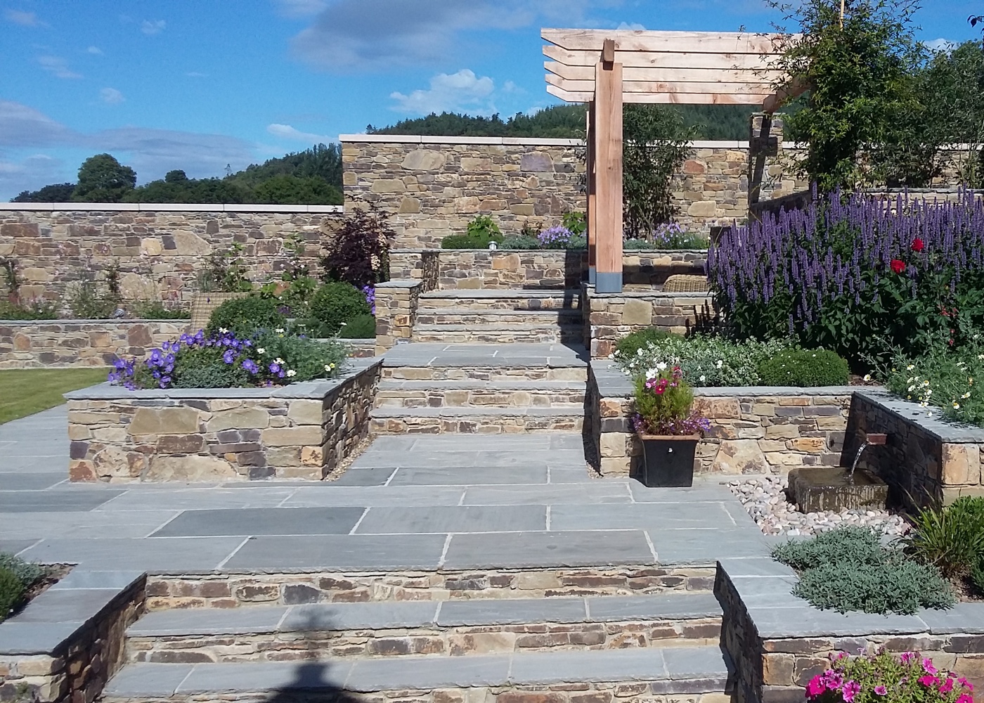 - Solid retaining walls with clean jointing