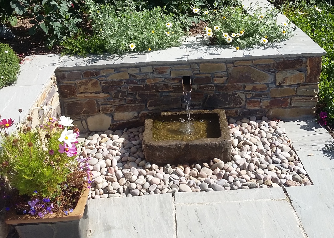 Finishing works included careful edge detailing, neat jointing, and coordination with planting to soften the stonework. The combination of masonry and greenery delivers a balanced and welcoming result.